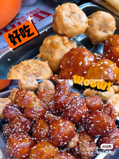 用糯米團(tuán)子放入紅糖油鍋里炸制的糖麻園,愛吃甜糯食物的小伙伴一定會(huì)喜歡。